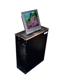 液晶屏升降器主要應(yīng)用于大型會議室,高級多媒體網(wǎng)絡(luò)系統(tǒng),當需要舉行會議時隱藏在會議桌內(nèi)的升降機把顯示屏從會議桌下面自動升到桌面并仰成一成角度,符合人機工程學原理,產(chǎn)品也可以左右調(diào)節(jié)角度,更有利于辦公演示的需要,當不使用時顯示屏可自動下降隱藏于會議桌內(nèi)部,并自動關(guān)門,產(chǎn)品具有防盜、防塵保持桌面平整,美化桌面等功能。最新研制生產(chǎn)的同步帶傳輸液晶顯示屏升降器,克服了鏈條、和齒條升降器的噪音大、油污多、傳動不穩(wěn)定等缺點,是目前國內(nèi)最新液晶屏升降器的傳動方式。